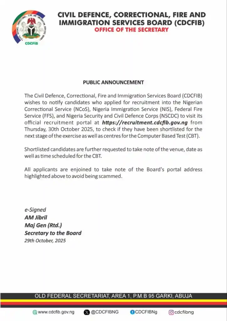 The Nigeria Security and Civil Defence Corps (NSCDC) Shortlisted Candidates 2025 list is out. Do you apply for the NSCDC recruitment 2025? The NSCDC Shortlist PDF is out online. However, this guide will help you to check your name on the NSCDC recruitment list on the official Nigeria Security and Civil Defence Corps portal via www.cdcfib.career.